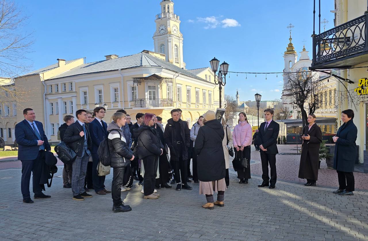 Маршрут стартовал у здания Ратуши, где группа прогулялась по исторической части города, знакомясь с архитектурными памятниками и знаковыми местами. Кульминацией экскурсии стало посещение бывшего Губернаторского дворца — величественного здания, которое является одной из ярких достопримечательностей Витебска. Внутри участники погрузились в атмосферу прошлого, узнавая о жизни и быте бывших обитателей здания.