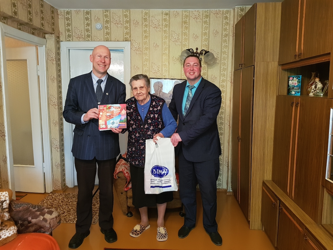 В силу возраста не все ветераны ВГМУ, малолетние узники смогли посетить торжественное мероприятие в родном вузе. Председатели и активисты первичных профсоюзных организаций посетили и поздравили на дому Савельеву Лидию Григорьевну и Гулидова Эдуарда Павловича. От администрации ВГМУ и «первичек» ВГМУ им были вручены подарки.
