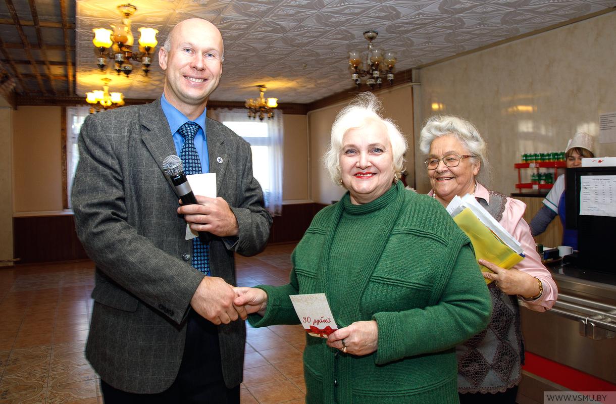 После концерта ветераны имели возможность насладиться общением друг с другом за праздничными столами, накрытыми для них в нашей столовой. Ведущим этого вечера-встречи был председатель профкома сотрудников Алексей Константинович Погоцкий. Там звучали и стихи, и музыка, и слова поздравления… Роскошь человеческого общения поистине бесценна! Также на этом вечере трое заслуженных сотрудников университета получили подарочные сертификаты от профсоюзного комитета сотрудников.