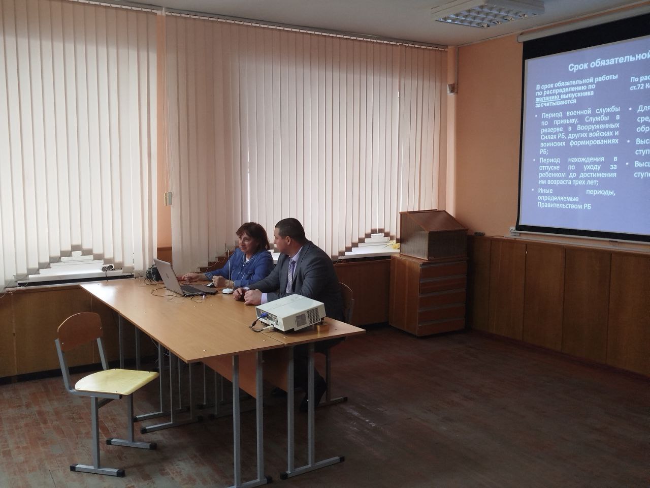23 мая в лекционной аудитории лабораторно-теоретического корпуса Витебского государственного медицинского университета состоялась встреча выпускников ВГМУ, молодых сотрудников ВГМУ и работающей молодежи вуза с главным правовым инспектором труда Витебского областного комитета Белорусского профсоюза работников здравоохранения Алиной Королёвой и заместителем начальника отдела ипотечного и льготного кредитования Беларусбанка Андреем Яцуком и заместителем начальника отдела продаж розничных банковских продуктов и услуг Мариной Буза.